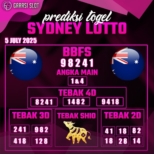 Prediksi togel Sydney hari ini yang ditawarkan GARASISLOT akan membantu Kamu dalam menyelesaikan catatan menyiapkan angka main. Prediksi GARASISLOT adalah halaman khusus untuk membocorkan angka prediksi seputaran pasaran togel terbesar di Indonesia. Hasil prediksi yang dirilis oleh tim khusus situs togel terpercaya GARASISLOT ini mempunyai tingkat akurat terbaik.