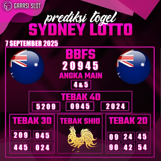 Togel SYDNEY adalah pasaran terlaris yang hampir tidak pernah tergantikan. Setiap harinya ribuan pengguna memburu dan mencari prediksi jitu seputaran togel Sydney hari ini. Nah, dibawah ini adalah prediksi togel Sydney Lotto 7 SEPTEMBER 2025 terbaik.